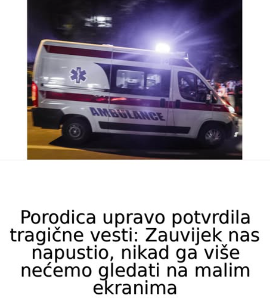 Porodica upravo potvrdila tragične vesti: Zauvijek nas napustio, nikad ga više nećemo gledati na malim ekranima